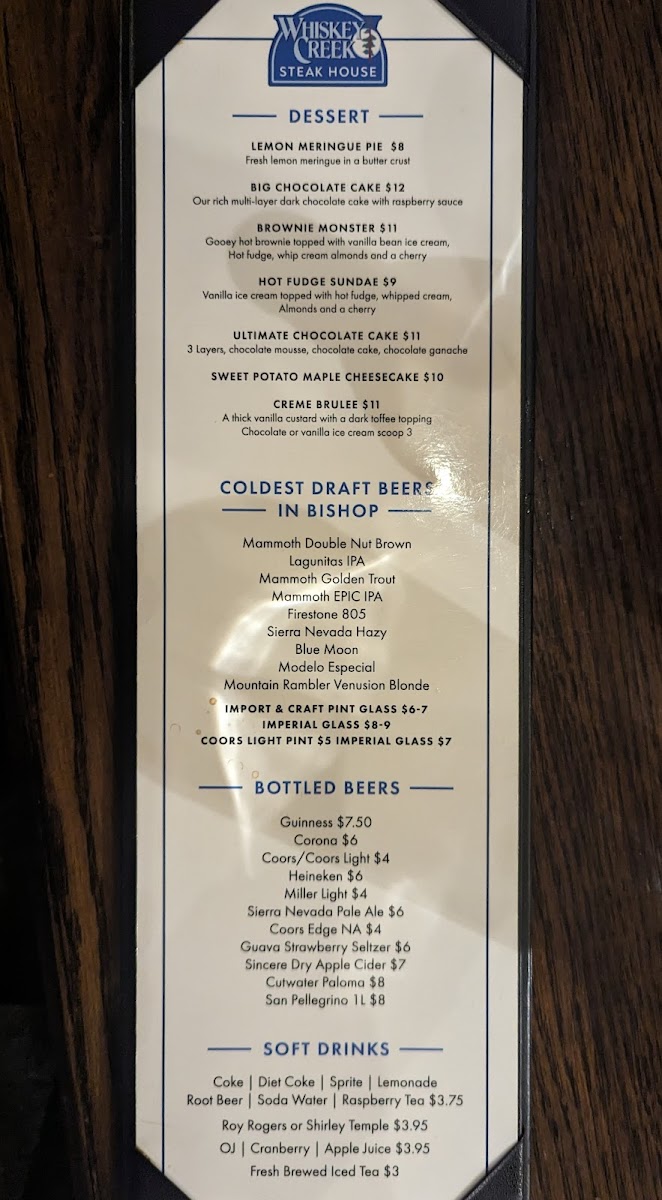 With late hours and a family-friendly vibe, the restaurant is an excellent choice after a long day exploring the nearby natural beauty of Bishop. Experience the art of dining at Whiskey Creek, where delicious food and an inviting atmosphere collide to create an unforgettable experience.